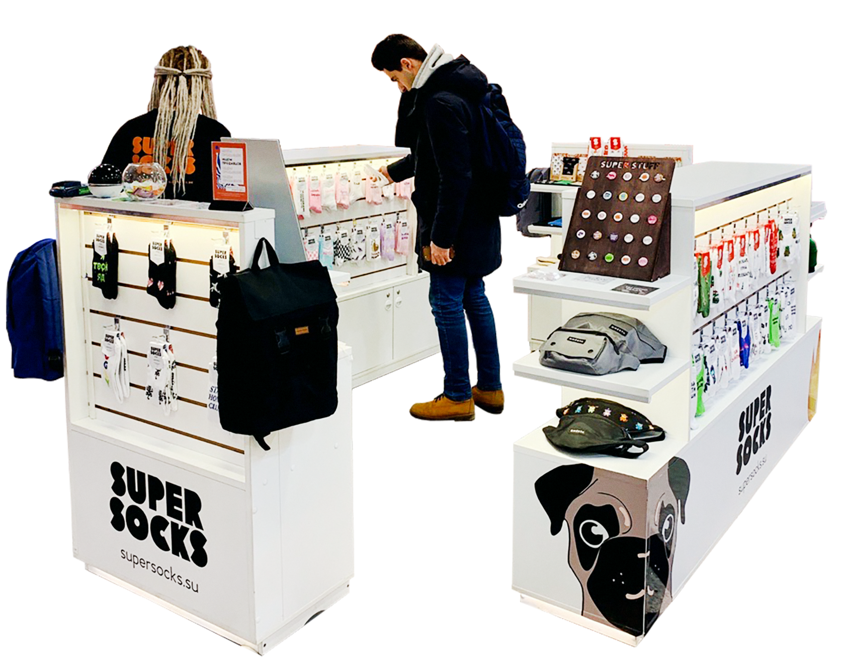 У бренда собственные магазины в центре Москвы, Екатеринбурга, Краснодара и других городов. Также носочки SUPER SOCKS продаются через сеть магазинов-партнеров по всей стране, их количество превышает 200 точек. |